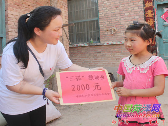 近日,由中国妇女发展基金会和鄄城县妇联联合举办的“三孤工程”捐助活动在鄄城县举行。基金会共为该县100名“三孤”人员捐助救助金20万元。基金会工作人员先后深入到董口镇、引马镇等部分“三孤”人员家中走访慰问,为22名“三孤”人员每人发放2000元救助金及2桶油。图为捐助现场。通讯员 王文爽 于滢源 记者 焦同帅 摄