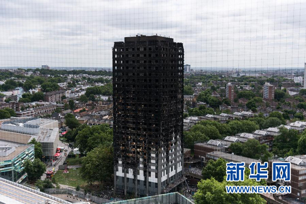 这是在英国伦敦拍摄的发生火灾的高层居民楼(6月16日摄)。新华社发(雷伊·唐摄)