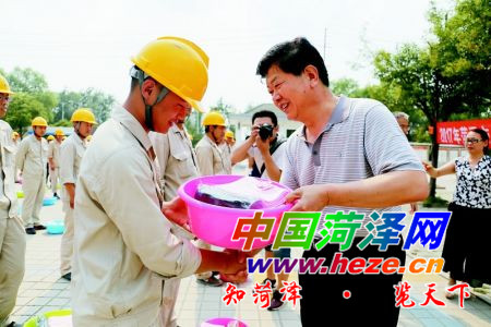 6月27日下午,市总工会在山东新阳丰肥业有限公司举行全市“一线职工平安度夏送清凉”活动启动仪式。“夏送清凉”活动是全市各级工会长期开展的 “四季服务”活动的重要内容之一。牡丹晚报全媒体记者 淑娅 摄