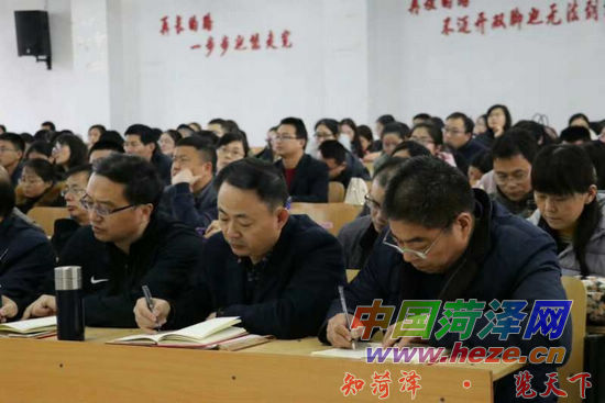 中国菏泽网消息(记者 张坤)为认真学习宣传贯彻党的十九大精神,11月19日,菏泽一中特别邀请中共山东省委党校副校长孙黎海、山东省委党校党建部中共党史专业博士刘飞在人民路校区学术报告二厅举行“十九大精神进校园”宣讲活动。菏泽一中党委书记、校长李志献主持,全校320余名党员干部聆听了报告会。
