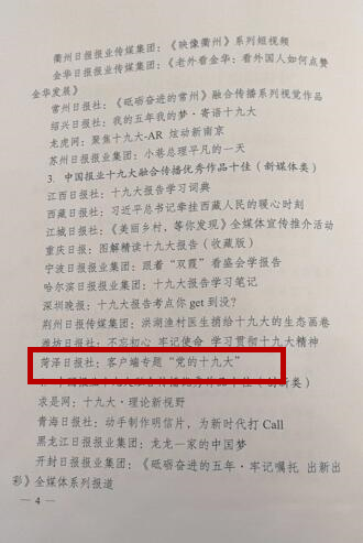 菏泽通《党的十九大》专题获“中国报业十九大融合传播优秀作品十佳”奖
