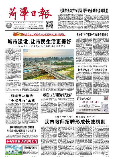 近年来,菏泽日报社顺应媒体变革趋势,积极研究和推进媒体融合发展,在强力培植微博、微信、客户端等新媒体的基础上,全力推进报纸和新媒体的深度融合,形成了全媒体、全天候、全覆盖的全方位传媒发展格局,宣传质量不断提高,公众影响力显著提升。在党的十九大召开前后,菏泽日报全媒体更是发挥新闻舆论主阵地的作用,先后在报纸、新闻客户端上开设了“迎十九大、砥砺奋进、科学赶超、精彩菏泽”、“党的十九大”“庆十九大·中国梦·我的梦”“十九大精神宣讲进行时”“十九大报告解读”等专题、专栏,传统媒体与新兴媒体全方位发力、融合传播,快速、准确、有效地宣传了党的十九大精神,唱响了主流媒体的最强音。