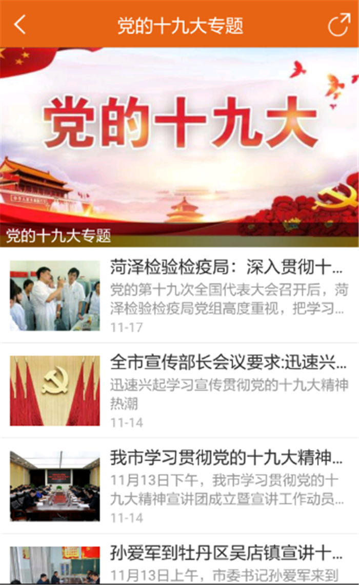 新闻客户端菏泽通《党的十九大》专题截屏