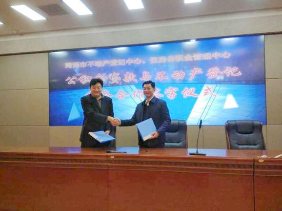 中国菏泽网消息(记者 张坤)1月12日,菏泽市不动产登记中心、市住房公积金管理中心公积金贷款与不动产登记业务合作签字仪式举行。菏泽市国土资源局和菏泽市住房公积金管理中心本着人民至上的服务理念,经共同研究,决定菏泽市不动产登记有关住房公积金抵押业务进驻市住房公积金管理中心营业厅窗口办理。