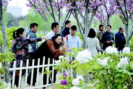 4月12日上午,第27届菏泽牡丹文化旅游节在曹州牡丹园国花魂广场开幕,大量游客涌入菏泽各大牡丹名园赏花,围绕牡丹的一系列活动在这个春天轮番上演。眼下,正值大田牡丹最佳观赏期,曹州牡丹园内游人如织,盛开的牡丹姹紫嫣红,细雨和牡丹相互映衬,更显妩媚动人。