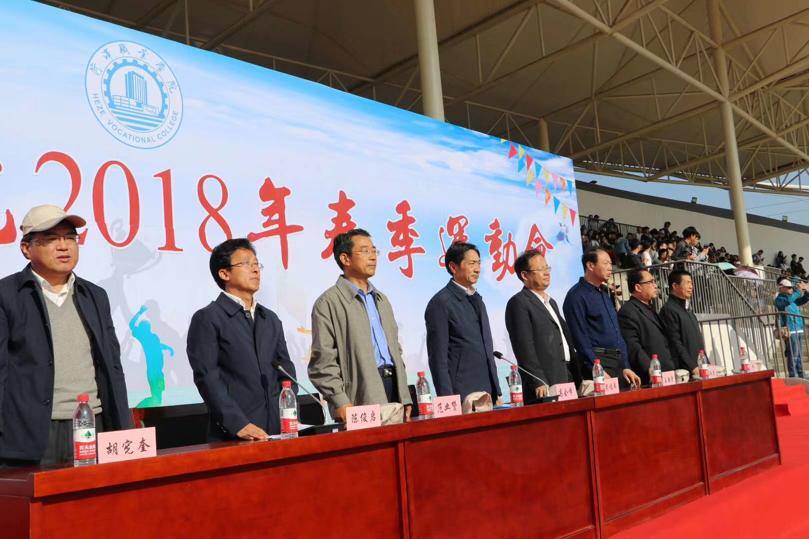 中国菏泽网消息(记者 张坤)4月19日上午,菏泽职业学院隆重举行2018年春季运动会,学院全体师生参加了开幕式。职业学院副院长陈俊启主持开幕式,院长高会峰致开幕词,800多名运动员将参加100米、1500米,3000米,跳高、跳远、铅球、托球跑等15个大项80个小项的竞赛。
