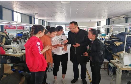 鄄城县董口镇包村干部来到村里的扶贫车间推广“学习强国”学习平台