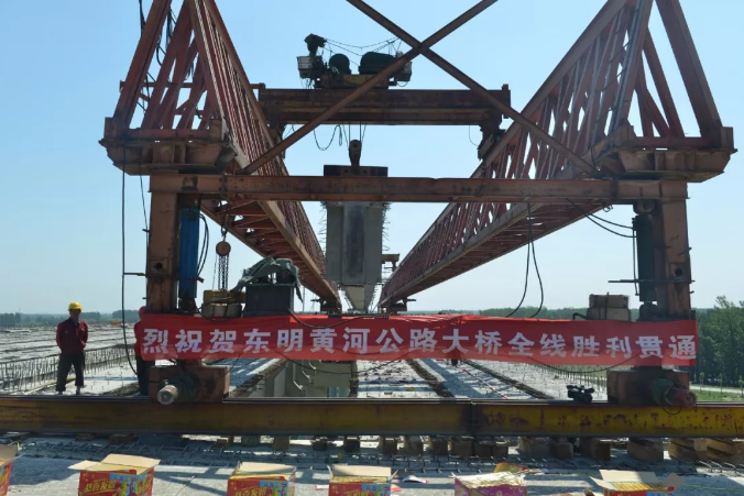 5日上午10时58分,随着架桥机将项目第3460榀预制梁徐徐放下,精准合龙,标志着东明黄河公路大桥全线胜利贯通。至此,项目实现东向与日东(日照-东明)高速、西向与菏宝高速(河南境内长垣-济源高速)长垣段的连通。