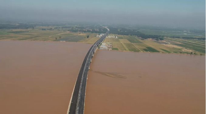 7月5日上午 菏宝高速东明黄河公路大桥主体已全线贯通