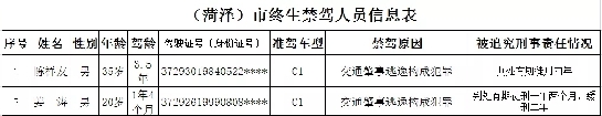 一、终生禁驾名单曝光(共2名)