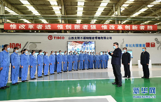 随后,习近平前往太钢不锈钢精密带钢有限公司考察调研。这家企业依托先进生产工艺,以其“超薄、超平、超硬”的产品特性取得快速发展。习近平走进生产车间,察看企业转型升级产品展示,了解企业运行情况。在光亮机组前,习近平饶有兴致地观看了厚度仅有0.02毫米的不锈钢箔材“手撕钢”产品。习近平指出,产品和技术是企业安身立命之本。希望企业在科技创新上再接再厉、勇攀高峰,在支撑先进制造业发展方面迈出新的更大步伐。现在,全国防疫工作进入新阶段,既取得重大战略成果,同时面临外防输入、内防反弹的压力,希望企业不要麻痹松懈,继续抓紧抓实抓细各项防控措施,更好复工复产,做到安全生产、健康生产,把失去的时间抢回来,努力完成今年的目标任务。