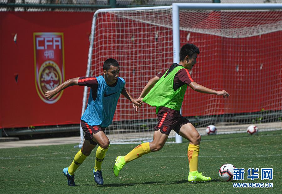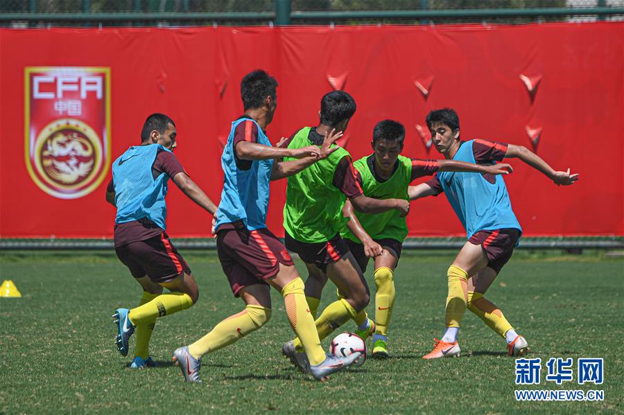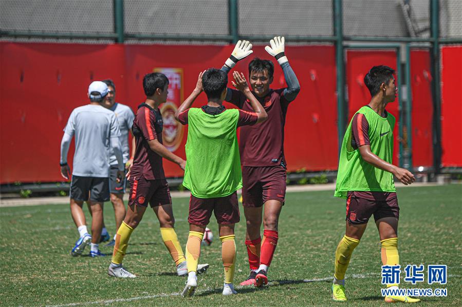 5月25日,中国男足U16国少队球员在训练中。 当日,中国男足U16国少队在海口观澜湖足球基地训练,备战巴林亚少赛。 新华社记者蒲晓旭摄