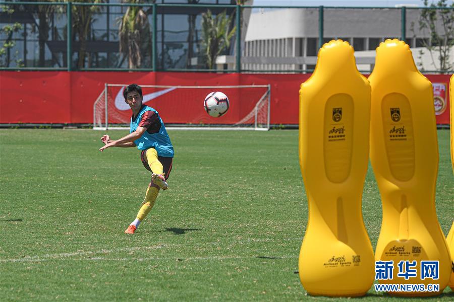 5月25日,中国男足U16国少队队员艾力库提·艾沙江在训练中。 当日,中国男足U16国少队在海口观澜湖足球基地训练,备战巴林亚少赛。 新华社记者蒲晓旭摄