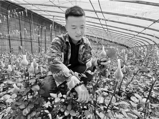 5月27日,在牡丹区吴店镇艺茂玫瑰种植基地内,花农正在采摘玫瑰花。 近年来,该镇积极调整农业产业结构,引导农民群众走“合作社+农户+基地”的种植模式,发展以玫瑰花种植及深加工为特色的生态休闲农业,以花为媒,助力乡村振兴。