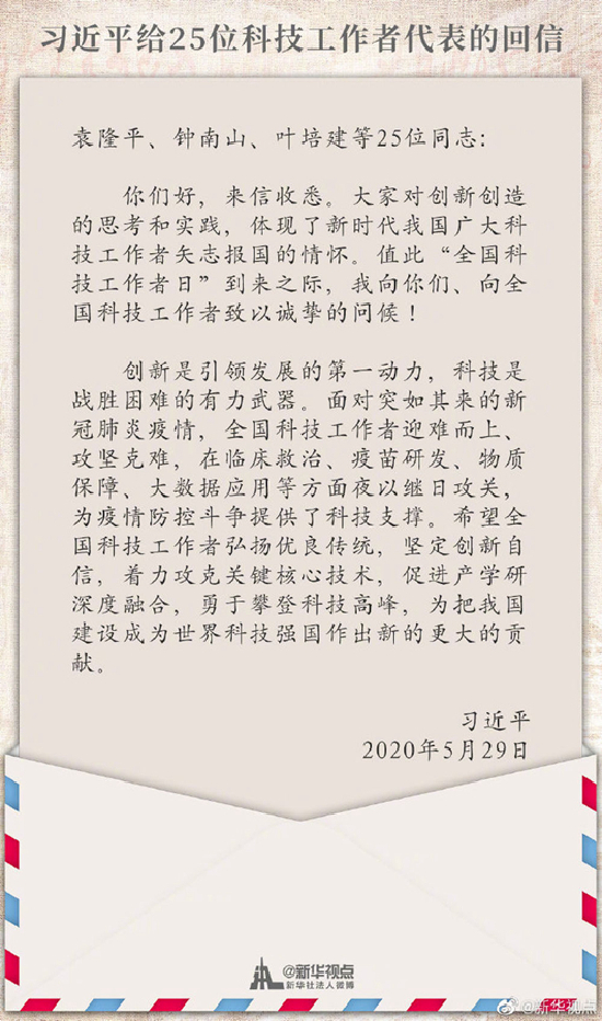 两会刚刚闭幕。5月29日,一封充满暖意的回信送到了25位科技工作者的手中。