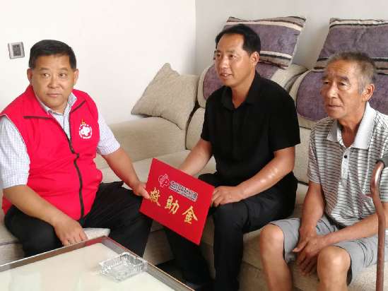 6月10日,定陶区程庄行政村后程村“好女婿”邓庆春收到了4000元的“为福添彩”公益救助金和大米、食用油、牛奶等。当日,市福利彩票销售管理中心主任冯相珍(左)带领中心部分党员前来慰问并帮他整理大蒜。据了解,邓庆春是哈尔滨人,2007年遵从岳父的意见落户后程村,岳父及妻子的奶奶患有股骨头坏死疾病,2017年妻子又患病,花费了10多万元,邓庆春一人支撑起5口之家,生活遇到了困难。“扶老、助残、救孤、济困”是福利彩票的发行宗旨,“为福添彩”公益救助活动是山东省福彩中心2016年开展的活动,5年来已救助130余个困难家庭。 记者 马 琳 摄