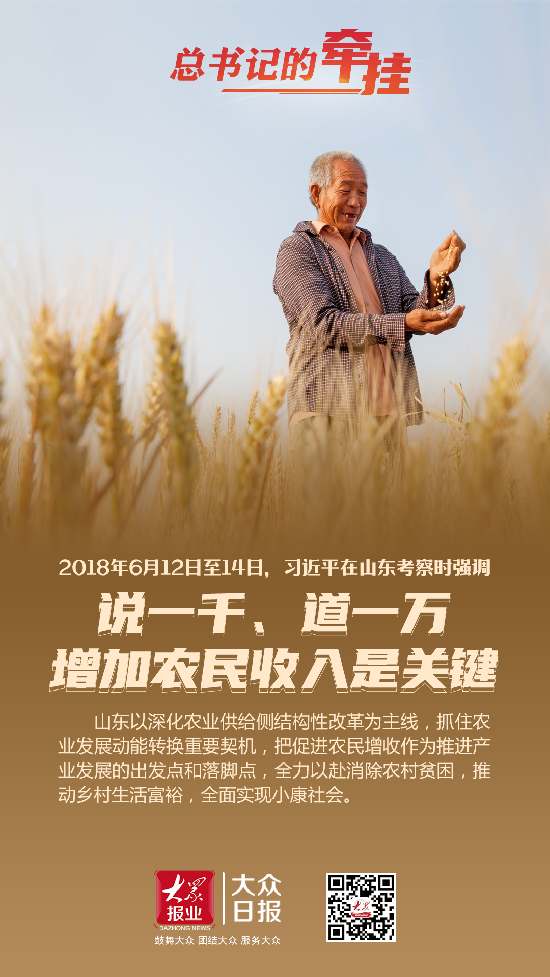 总书记视察山东两周年之际,大众日报客户端精心设计“总书记的牵挂”主题海报。总书记对山东的牵挂,山东一亿多人民记在心里,付诸实践。