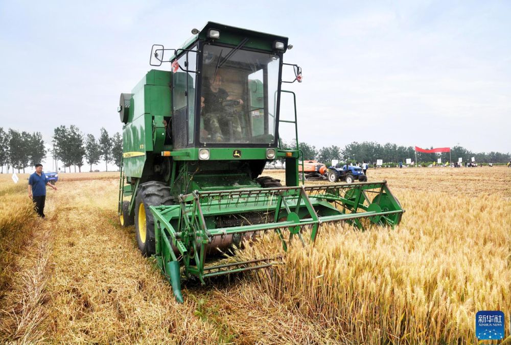 周集村党支部书记周新年说:“村里有4台收割机,几天就能把全村的麦子收割完毕。”