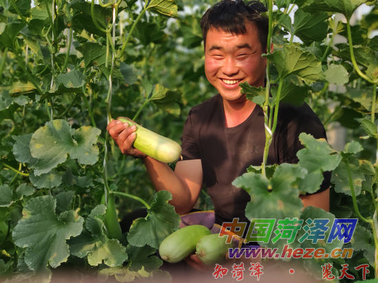 6月10日,在东明县大屯镇前游屯村瓜菜种植扶贫产业合作社里,瓜农正在采摘成熟的“羊角蜜”甜瓜。据了解,该村农民主要以种植瓜果为脱贫主导产业,共建有扶贫大棚60座,去年试种2棚特色品种甜瓜,收入十分可观,今年发展到了12棚,每棚能多收入3000多元。如今,该村30余户贫困户通过种植新品种甜瓜走上脱贫致富路。记者 李保珠 摄