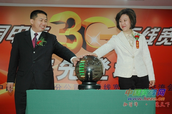 4月22日上午,菏泽电信3G无线宽带体验交流会在菏泽和平大酒店举行,市委宣传部部长孙丰华、菏泽电信公司总经理张玉艳共同启动了中国电信菏泽3G业务试商用。