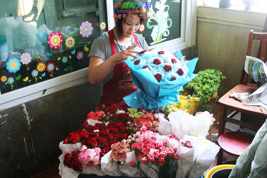 今年的5月10日,也就是本月第二个周日--“洋节”母亲节,送一束鲜花给母亲是不少市民的选择,这使我市的鲜花市场迎来了销售热潮。5月7日上午,记者在中华路上某艺鲜花店里看到,店员正在整理刚从昆明空运过来的康乃馨。据店主介绍,随着母亲节的到来,最近来预定鲜花的市民比平时明显增多,他们花店新进了6000余枝不同颜色的康乃馨以备市民选购。