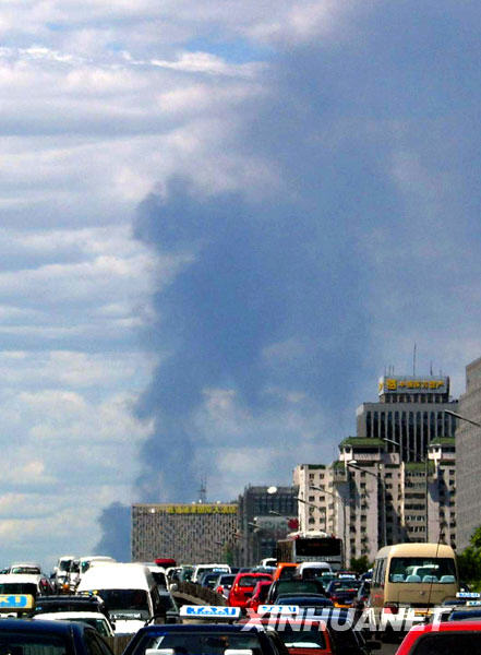 6月12日,在北京中心区就可以看见数公里外的滚滚浓烟。当日13时40分许,北京昌平区沙河镇白各庄一个旧货市场发生火灾,截至记者发稿时,伤亡情况不明。新华社记者 公磊 摄