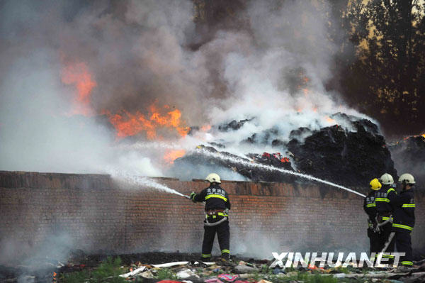 6月12日,消防人员正在灭火。当日13时40分许,北京北五环路外昌平区一旧货市场发生火灾,截至记者发稿时,伤亡情况不明。新华社记者 罗晓光 摄
