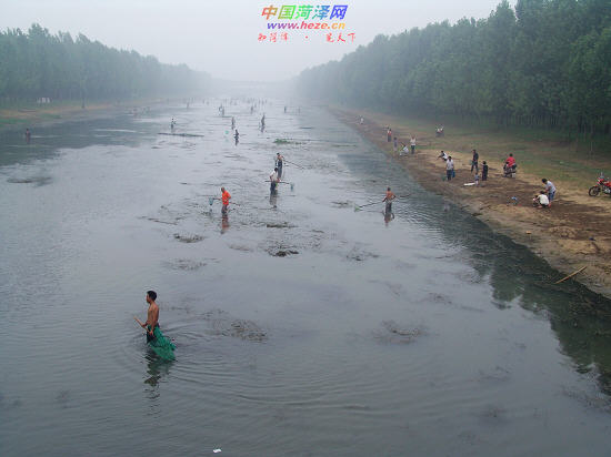 中国菏泽网消息 6月18日,定陶与曹县交界的红卫河内鱼儿“翻坑”,引得附近上百村民前往捕鱼(如图)。