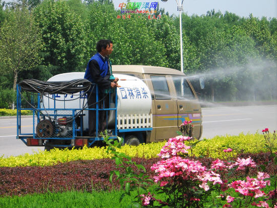 在市昆明路上,牡丹区园林处西城绿化管理所的张建华与同事一起,正在为路边的绿地及观赏树喷洒药物。张建华向记者介绍:“进入夏季后,害虫繁殖的速度加快,如果不定期喷洒药物,植物很容易发生病虫害。”在昆明路上,记者还看到一些园林工人正在修剪绿化灌木,他们要将这片灌木修剪出美丽的图案;同时,还有一些园林工人正在清理绿地内的树叶、废纸等垃圾。