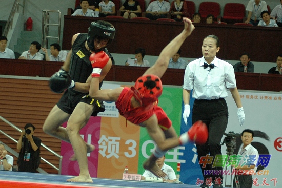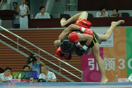 7月13日晚,“好客山东”——2009年“四君子”杯山东省武术散打锦标赛暨十一运测试赛继续在菏泽演武楼进行,在当晚进行的男子乙组48公斤级的决赛中,菏泽二队队员曹行勇夺冠军。