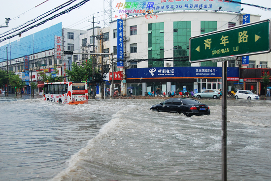 由于此次降雨比较急促,菏泽市区部分街道出现积水。当日上午,记者在青年路看到,往来车辆和行人在积水中艰难行进。一辆面包车在水中突然熄火,三位执勤交警上前援助,把熄火的面包车从水中推出。丹阳路部分路段也出现积水,部分汽车在水中熄火。
