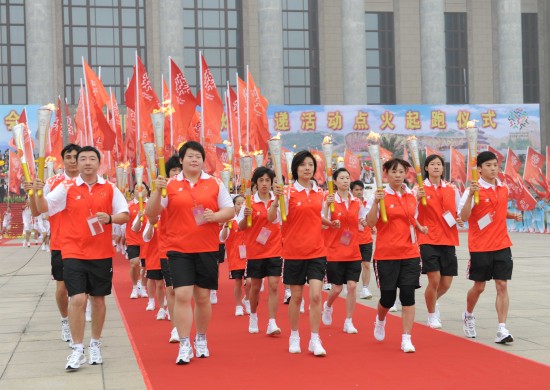 中新网8月16日电 16日上午,第十一届全国运动会火炬传递活动点火起跑仪式在北京举行。