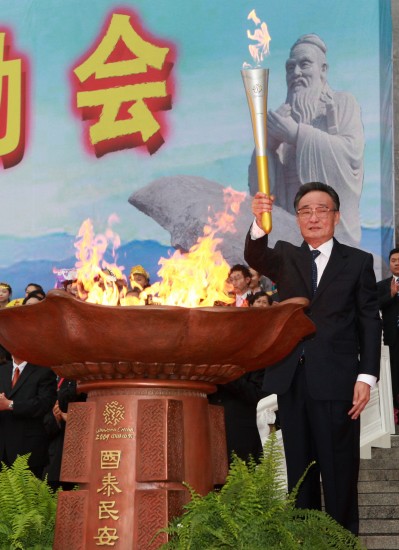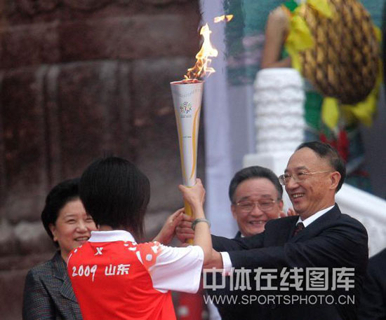 中共中央政治局常委、全国人大常委会委员长吴邦国点燃了第十一届全国运动会火炬传递活动的主火炬。