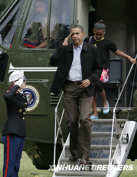 8月30日,在美国华盛顿白宫南草坪,美国总统奥巴马从专机“海军一号”内走出。当天,奥巴马结束了在马萨诸塞州玛尔塔葡萄园岛的假期,回到华盛顿。新华社/路透