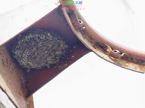 中国菏泽网消息 一窝马蜂在市检察院家属院内篮球架上“安营扎寨”,干扰居民生活,一女童被蛰伤。8月31日下午,市消防支队特勤中队接到报警,迅速派人将马蜂驱除。