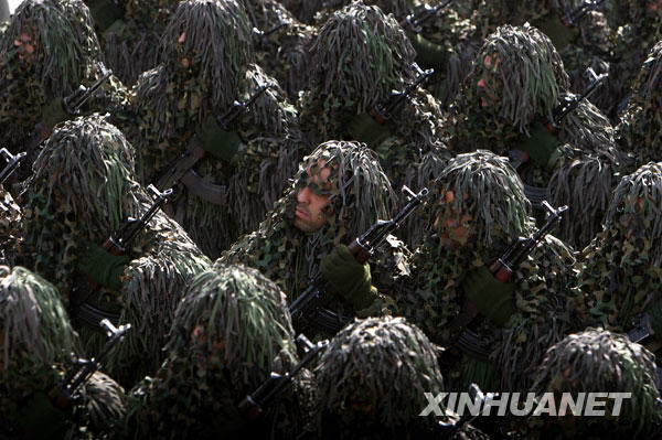 9月22日,伊朗士兵在德黑兰举行的纪念伊朗和伊拉克战争爆发29周年仪式上接受检阅。新华社发(哈拉比萨斯摄)