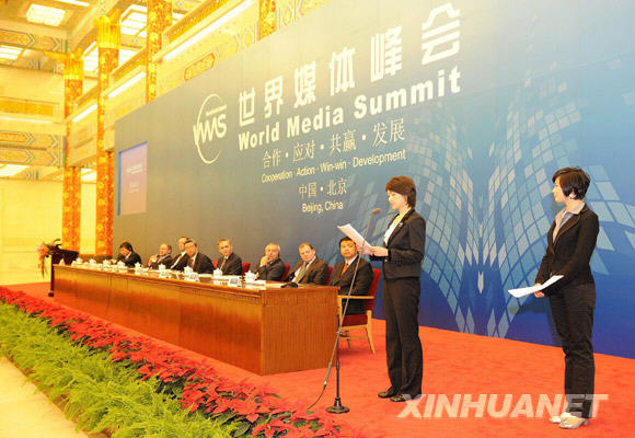 10月10日,工作人员宣读世界媒体峰会共同宣言。当日,世界媒体峰会全体会议通过共同宣言。新华社记者谢环驰摄