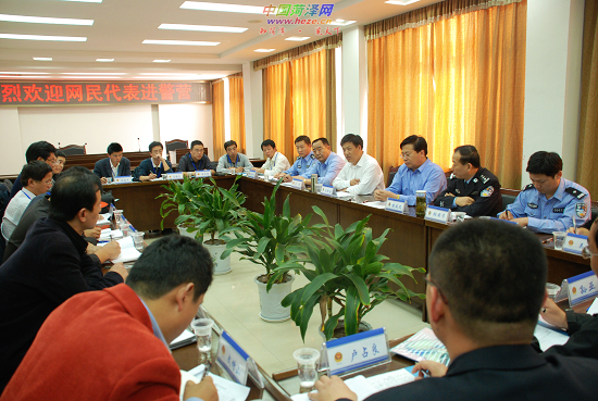 10月23日,来自本网菏泽论坛的20位菏泽网民,应邀走进菏泽市公安局110指挥大厅、张弓警务室、看守所、24号高速路口警务工作站、交警指挥中心等部门参观。通过参观,网民实地了解了各警务部门的运作情况、一线民警的工作、生活状态。23日下午,副市长、市公安局局长刘新云亲切接见了网友代表,并就我市社会治安、警民共建等话题进行了面对面交流。