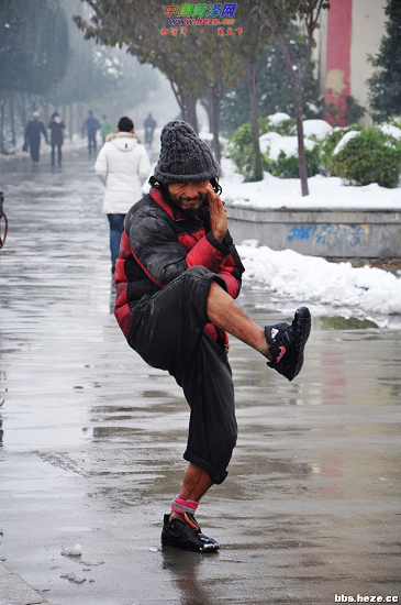 腼腆地笑了;另一方面,他又摆出各种POSS,显出艺术潜能。但不管怎样,在这寒冷的冬日里,我忽然感到很温暖。 网友“寒江垂叟” 摄