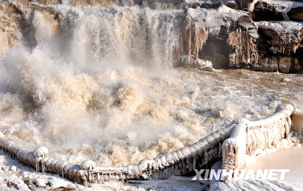 12月22日拍摄的壶口瀑布冰凌景观。 新华社发(祁小军 摄)