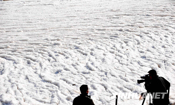 连日来,受降温影响,位于秦晋大峡谷的黄河壶口瀑布出现奇特美丽的冰凌景观,吸引众多游客和摄影爱好者前来赏景拍照。新华社发(祁小军 摄)
