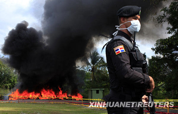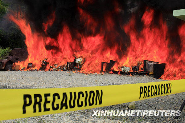 12月22日,在多米尼加首都圣多明各,缴获的毒品被焚毁。新华社/路透