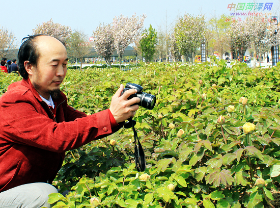 菏泽百花园内一株百年牡丹王近日盛开迎宾。丹专家孙景玉说:“这株牡丹树龄在170年左右,有400多个花蕾,为保护其成长,花农剪去了一部分。它至今还没有命名。”