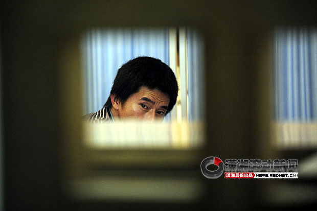 (演播室破例让“犀利哥”在演播室里抽烟,犹豫的眼神依旧。图/潇湘晨报滚动新闻记者 赵尚渝)