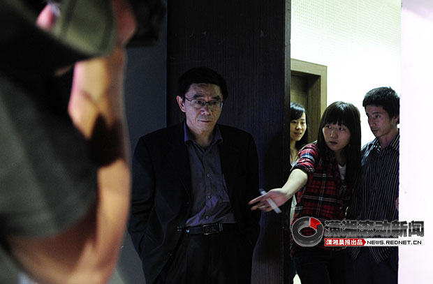 (“犀利哥”入场,引得其他演员的注目。图/潇湘晨报滚动新闻记者 赵尚渝)