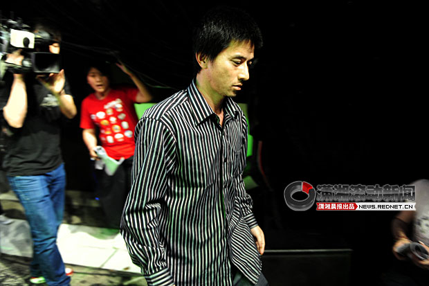 (在准备上台的时候,“犀利哥”突然改变了主意,不愿意上台参加节目的录制,而转身到观众席上坐下来。图/潇湘晨报滚动新闻记者