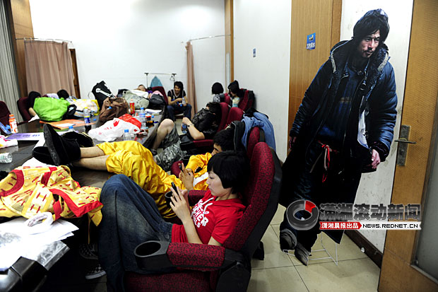 (化妆间里摆放着“犀利哥”的大幅海报。图/潇湘晨报滚动新闻记者 赵尚渝)