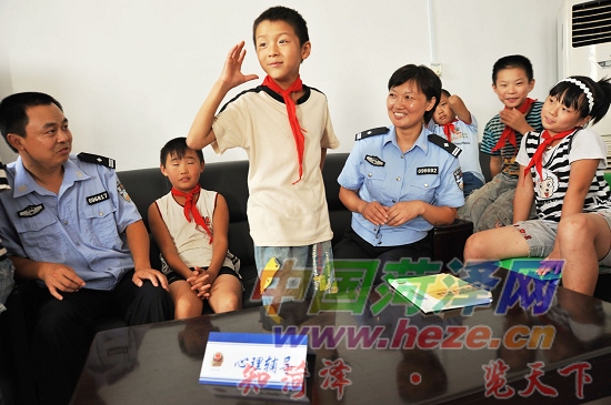 7月26日下午,山东省定陶县公安局杜堂派出所民警对辖区农村留守儿童进行心理健康辅导。暑假期间,杜堂派出所针对很多农村留守儿童不能和父母相聚,因缺少家庭教育和关爱,而出现了性格内向孤僻、怪异等不健康的心理现象,民警通过与留守儿童们做游戏、讲故事、互认互知、重点帮扶等方式,为留守儿童提供心理辅导,帮助留守儿童解决学习、思想及生活上遇到的困难,用爱心弥补他们缺失的亲情,使他们真正感到"心有人爱、身有人护、难有人帮"。