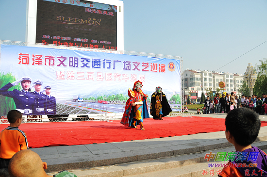 在大剧院附近的百姓大戏台,一群众演员在投入地进行戏曲演唱,周围的观众看得有滋有味。我市是戏曲之乡,群众演出团体较多,为方便群众演员演出,丰富群众的文化生活,我市在大剧院旁边建设了这处开放式的百姓娱乐场所。近年来,我市加大城市建设力度,城市环境大为改善,群众娱乐场所大大增加,群众的娱乐生活变得丰富多彩,市民在美好的环境里享受着美好的生活,内心充满了欢乐。
