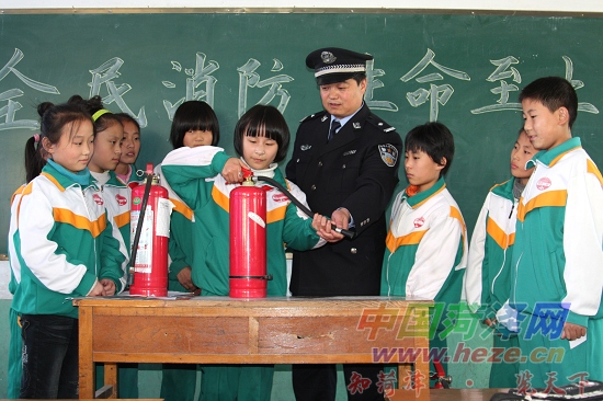 为了使孩子们从小掌握消防安全知识,学会会报警、会灭火、会逃生的方法,11月8日,在全国“119”宣传日来临之际,山东省菏泽市公安局牡丹分局市中派出所双井社区民警刘洪宝深入辖区牡丹区第一小学,向在校学生讲授消防安全常识,受到了老师和学生的好评。